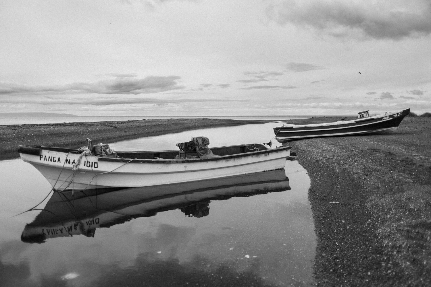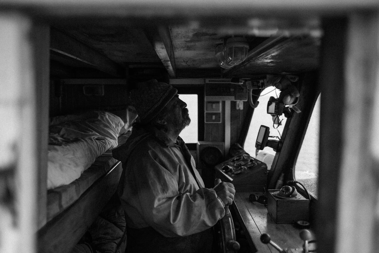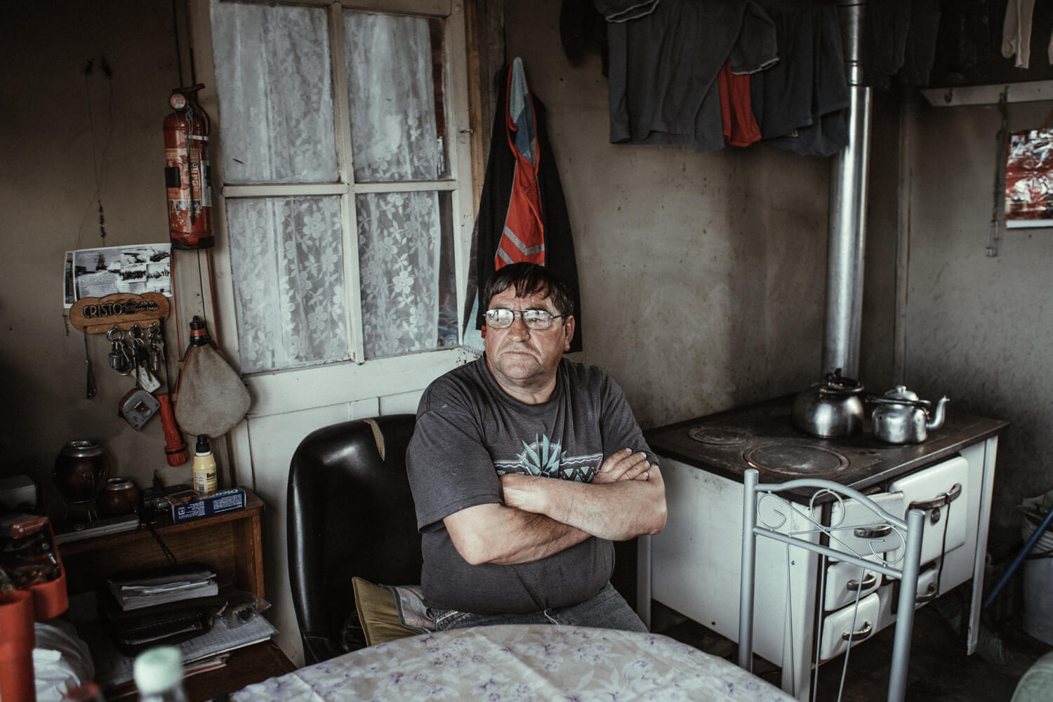Questa serie di fotografie scattate nella Patagonia cilena attraversano i luoghi e la dura vita dei pescatori artigianali di granchio dello Stretto di Magellano. Sulle coste della remota cittadina di Punta Arenas, ad un passo dall’Antartico, i relitti di vecchie imbarcazioni o di autovetture restano abbandonati allo scorrere del tempo, restituendo un paesaggio fortemente malinconico. Qui i pescatori artigianali solcano i mari più freddi del mondo a bordo di piccole imbarcazioni in legno a motore lunghe non più di dieci metri. Questa tradizione senza tempo, che come suggerisce il titolo divide la vita in periodi di 4 mesi in mare e una settimana a terra, rischia di essere cancellata e sostituita dalla pesca di carattere mercantile e industriale, da questi mostri di acciaio che, battendo la bandiera del capitale, rastrellano i mari senza preoccuparsi di quale sia l’impatto sulla bio-diversità e sugli equilibri dell’ecosistema.