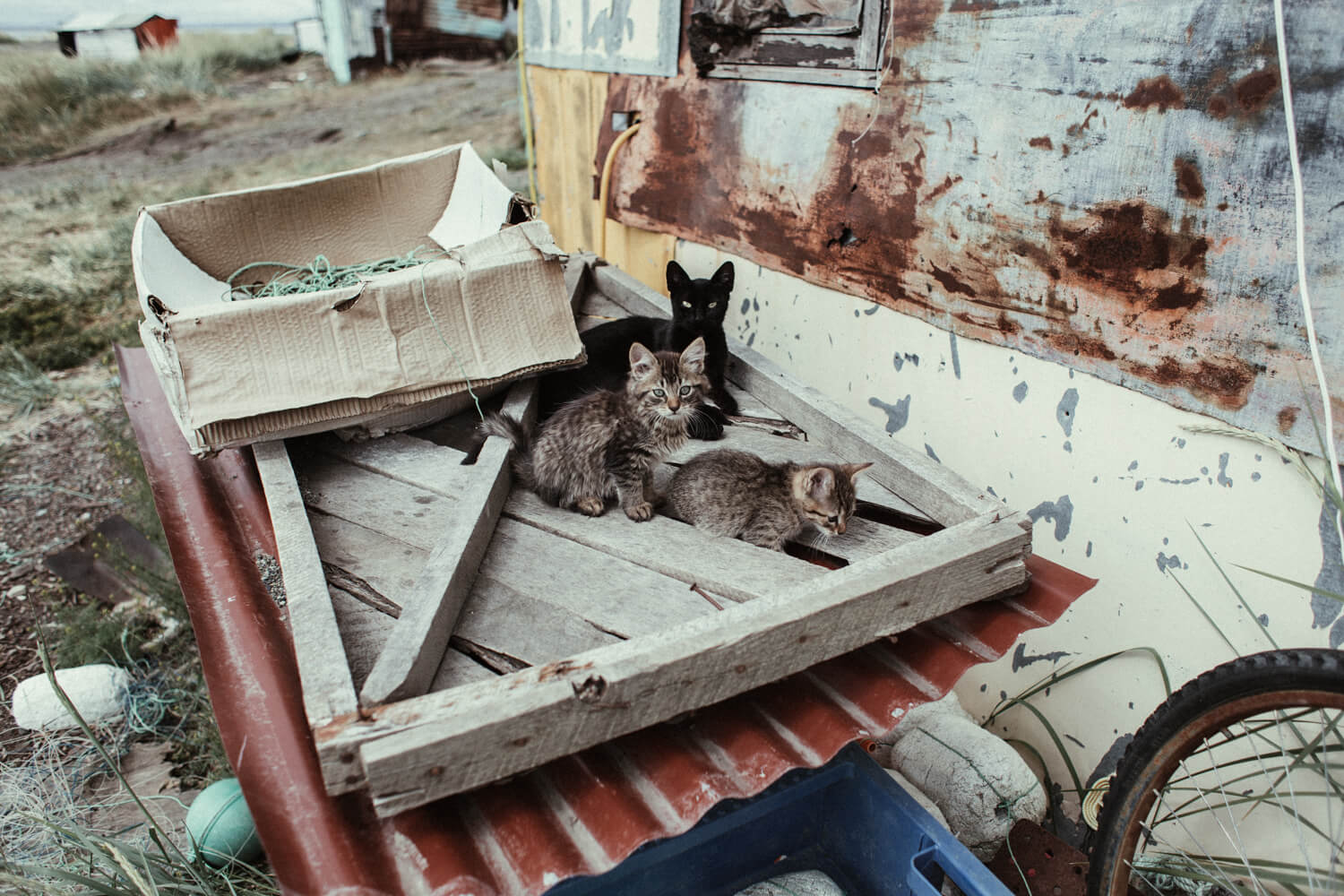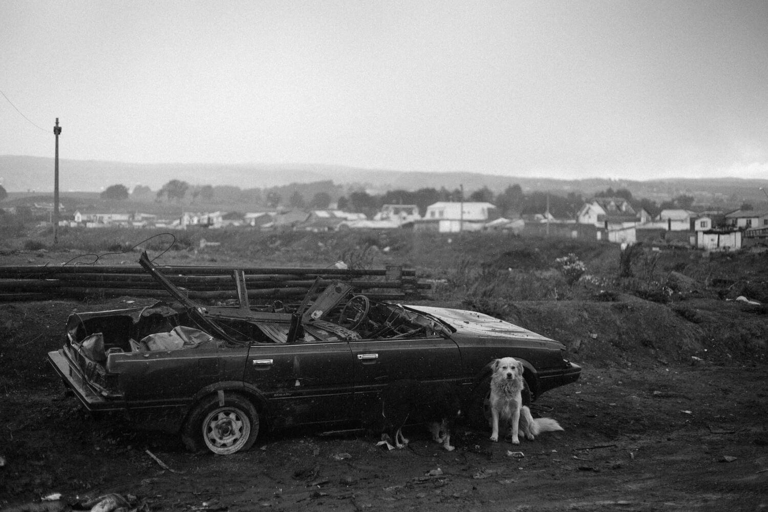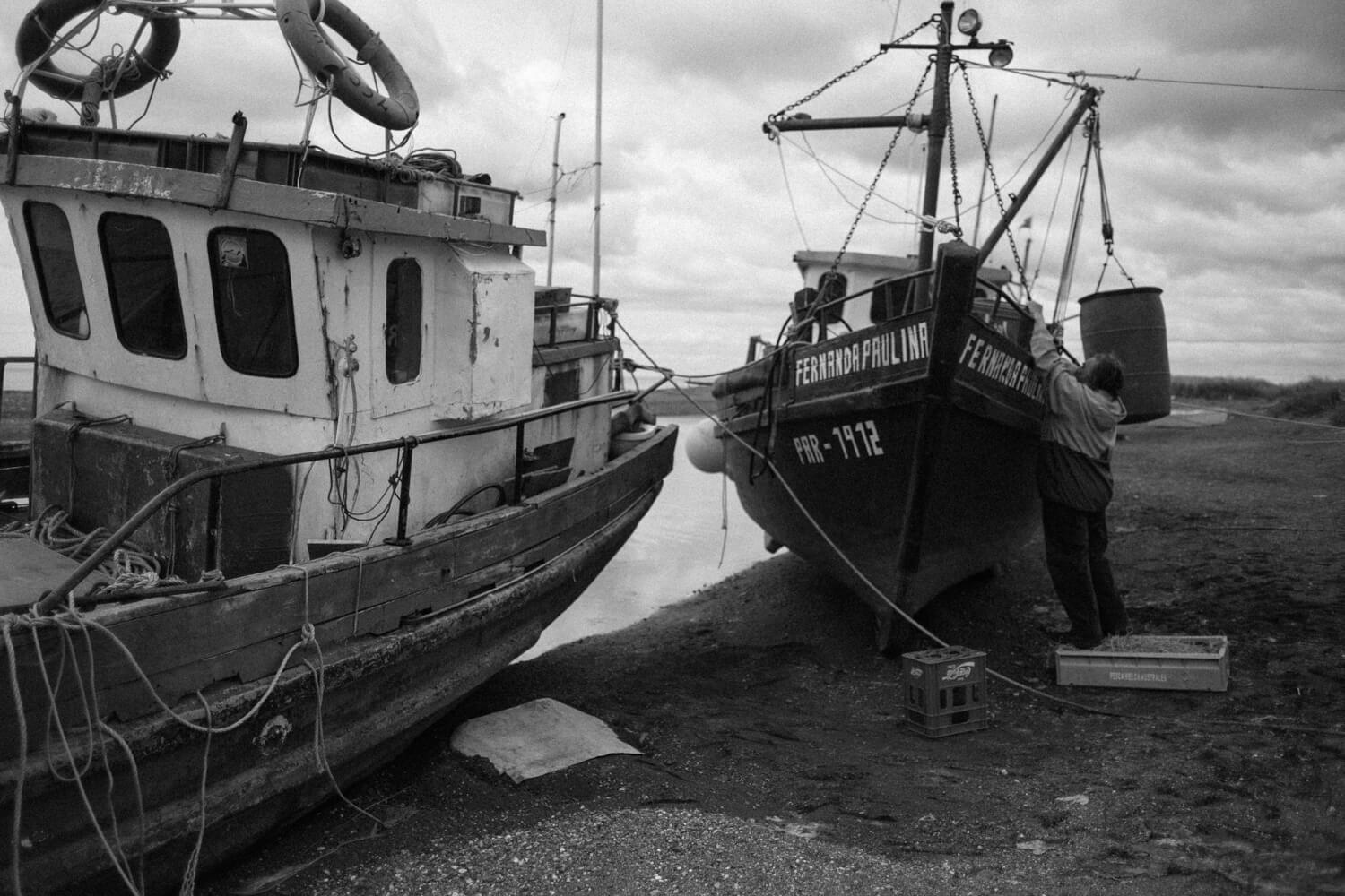 Questa serie di fotografie scattate nella Patagonia cilena attraversano i luoghi e la dura vita dei pescatori artigianali di granchio dello Stretto di Magellano. Sulle coste della remota cittadina di Punta Arenas, ad un passo dall’Antartico, i relitti di vecchie imbarcazioni o di autovetture restano abbandonati allo scorrere del tempo, restituendo un paesaggio fortemente malinconico. Qui i pescatori artigianali solcano i mari più freddi del mondo a bordo di piccole imbarcazioni in legno a motore lunghe non più di dieci metri. Questa tradizione senza tempo, che come suggerisce il titolo divide la vita in periodi di 4 mesi in mare e una settimana a terra, rischia di essere cancellata e sostituita dalla pesca di carattere mercantile e industriale, da questi mostri di acciaio che, battendo la bandiera del capitale, rastrellano i mari senza preoccuparsi di quale sia l’impatto sulla bio-diversità e sugli equilibri dell’ecosistema.